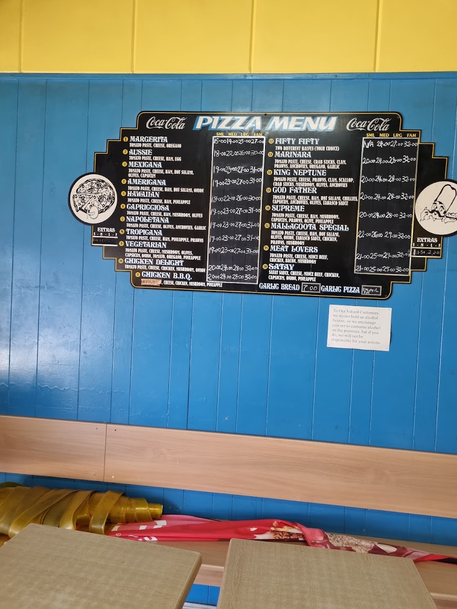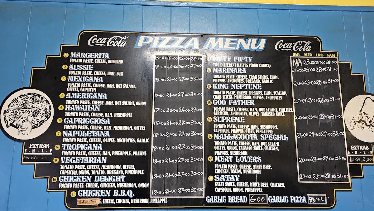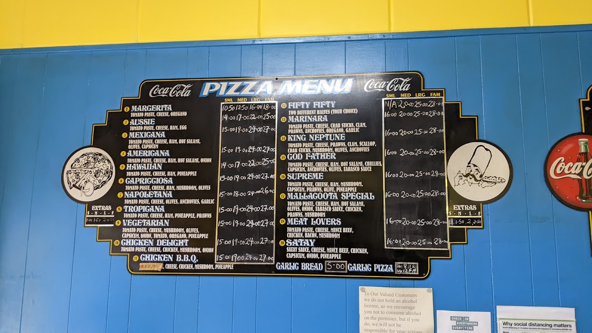 The selection is broad enough to appeal to different tastes, including meat lovers and those seeking vegetarian choices like satay vegetables or garlic bean curd. Favorites such as the Mallacoota Special Pizza and the Garlic Pizza highlight the kitchen’s commitment to familiar yet well-executed flavors. The menu also includes approachable desserts like donuts and fritters, perfect for finishing off the meal without fuss.