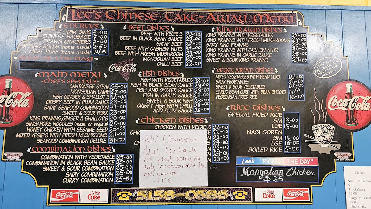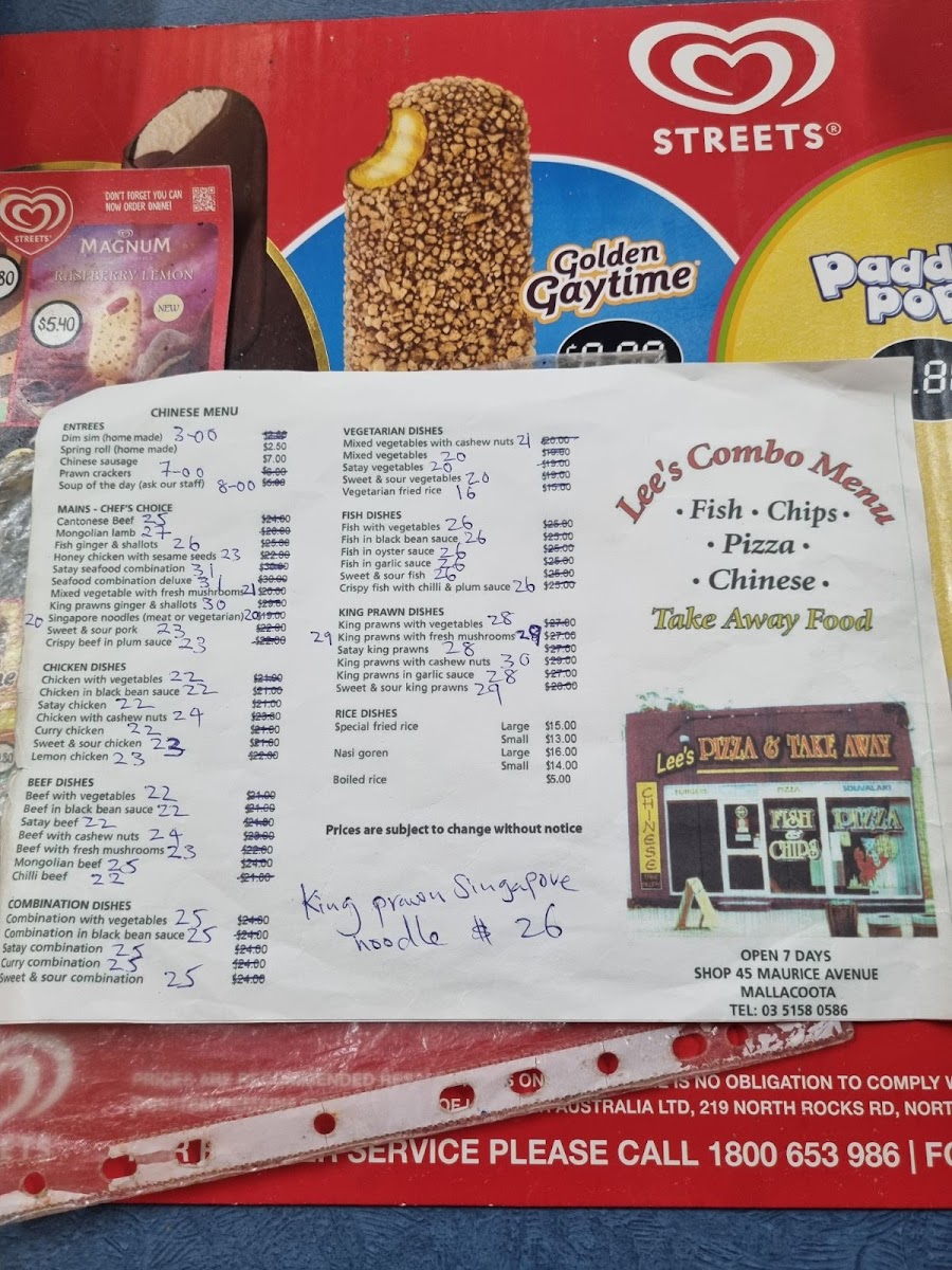 Lee's Pizza & Take Away Menu